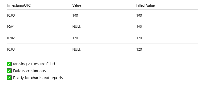 When working with time-based data such as energy readings, sensor data, machine logs, or server metrics, missing values (NULL) are very common.